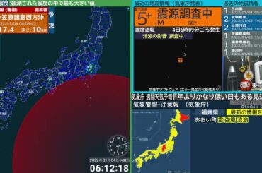 【強い地震】父島近海 震度5強 M6.3 (2022/1/4 6:09ごろ 切り抜きアーカイブ)