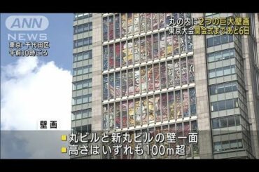 東京駅前ビルに“巨大な壁画” 五輪開会式まで6日(2021年7月17日)