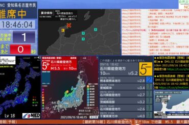 【緊急地震速報】石川県能登地方 最大震度5弱 2021年9月16日 18時42分頃発生
