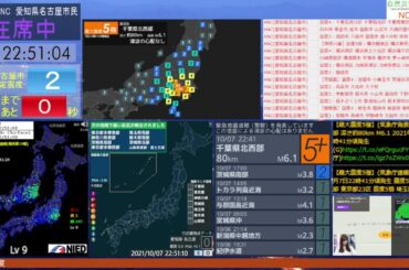 【緊急地震速報】 千葉県北西部 最大震度5強 2021年10月07日 22時41分頃発生