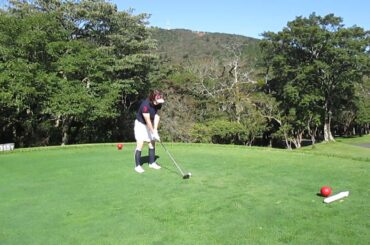 初心者女性ゴルファーにゴルフ女子が簡単レッスン!ポイントはジャンプして肩をブラ〜ん!?ゴルフクラブってどうやって構えるの?【Yuu編】