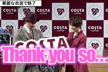米倉涼子、イベントで流暢な英語連発披露 久々のストッキング姿&ワンピースドレスで魅了 日本コカ・コーラ『コスタコーヒー』新CM発表会