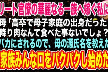 In DRAMA 【スカッとする話】エリート官僚の華麗なる一族へ嫁ぐ私に義母は「高卒で母子家庭の出身だったら霜降り肉なんて食べた事ないでしょ?w」仕方なく母の正体を明かすと義家族みんな口をパクパクし始めたw【修羅場】 2023.01.11 …