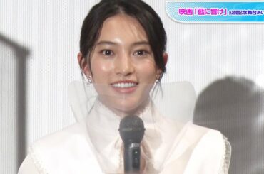 久保田紗友、個性派白ブラウスワンピ姿 ピンクリップがアクセント 映画「藍に響け」公開記念舞台あいさつ