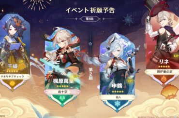 最新情報!4.4から4.6までのガチャが公開された!千織、カズハ、申鶴、召使【原神/げんしん】