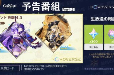 😎やった!4.3予告番組の要点まとめ:ガチャ、コード、新キャラ、新しい聖遺物、イベント【原神/げんしん】