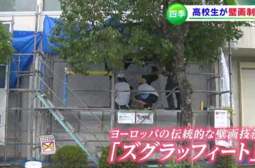 高校体育館の壁→ヨーロッパの伝統的な壁画の技法「ズグラッフィート」でアートに生まれ変わる!【岡山・瀬戸内市】
