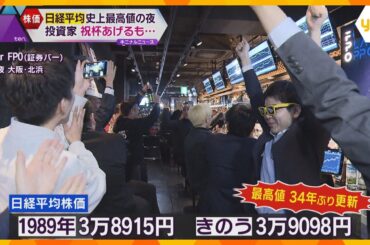 「給料も上がって」日経平均株価が史上最高値を更新 大阪・北浜の“証券バー”では投資家たちが祝杯