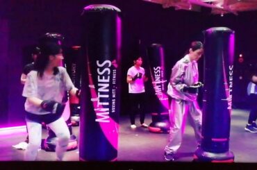 シャドーボクシングする栗山千明さんと辻凪子さん