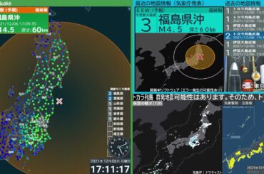 【地震】福島県沖 震度3 M4.4 (2021/12/6 17:22ごろ 切り抜きアーカイブ)