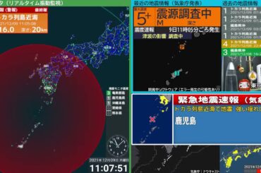 【強い地震】トカラ列島 震度5強 M6.0 (2021/12/9 11:05ごろ 切り抜きアーカイブ)