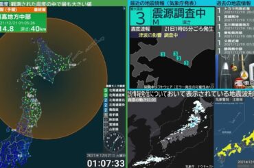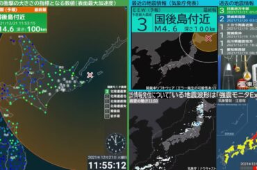 【深発地震】国後島付近 震度3 M4.9 (2021/12/21 11:53ごろ 切り抜きアーカイブ)
