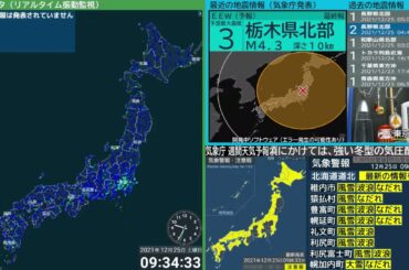 【地震】栃木県北部 震度3 M3.7 (2021/12/25 10:21ごろ 切り抜きアーカイブ)