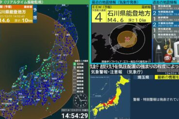 【地震】石川県能登地方 震度3 M4.2 (2021/12/31 14:52ごろ 切り抜きアーカイブ)