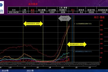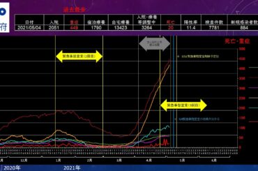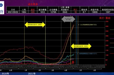 NEWS 2021.05.04 20210504【大阪府 緊急事態宣言】新型コロナウイルス感染症患者の発生状況推移<死亡・入院・ 重症・宿泊療養・自宅療養・医療崩壊・陽性率・検査件数・グラフ・ロックダウン>…