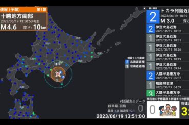 【緊急地震速報 予報】2023年6月19日13時50分頃に発生した十勝地方南部の地震