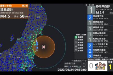 【緊急地震速報 予報】2023年6月24日 09時58分頃に発生した福島県沖の地震