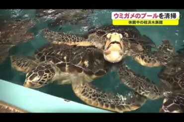 ウミガメのプールを清掃『まん延防止』で休館中の桂浜水族館・営業再開は13日【高知】 (21/09/11 17:00)
