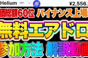 【無料エアドロ】時価総額60位バイナンス上場済【Helium2500円】が無料でガンガン貰える裏ワザ暴露 参加方法動画