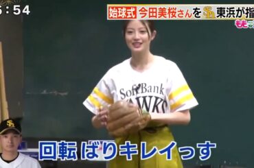 【始球式】ホークス東浜 福岡出身の女優 今田美桜に投球指導