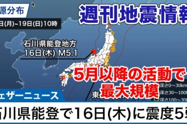 【週刊地震情報】石川県能登で16日(木)に震度5弱 5月以降の活動で最大規模
