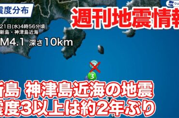 週刊地震情報 新島・神津島近海でM4.1 震度3以上は約2年ぶり