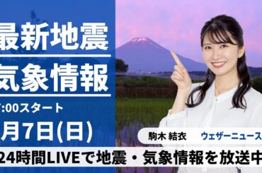 【LIVE】最新気象ニュース・地震情報 2023年5月7日(日) / 西日本、東日本の広い範囲で強雨〈ウェザーニュースLiVEイブニング〉
