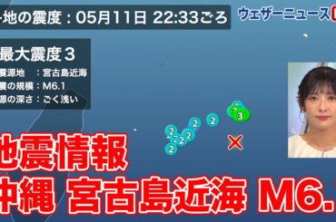 【地震情報】沖縄 宮古島近海でM6.1の地震 最大震度3 津波被害の心配なし