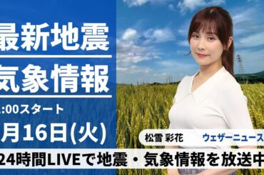 【LIVE】最新気象ニュース・地震情報 2023年5月16日(火) /東日本と西日本は青空広がる 熱中症に要注意〈ウェザーニュースLiVEコーヒータイム〉