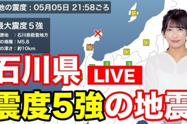 石川県で震度6強の地震発生【LIVE】地震情報 2023年5月5日(金) /〈ウェザーニュースLiVE〉
