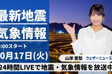 【LIVE】最新気象・地震情報 2023年10月17日(火)/明日は全国の広い範囲で晴れ 関東以西は汗ばむ陽気〈ウェザーニュースLiVEムーン〉
