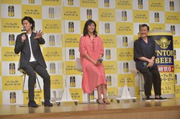 「3人の並び、エグないですか?!」松嶋菜々子、吉田鋼太郎、霜降り明星粗品登壇!「パーフェクトサントリービール新CM発表会」