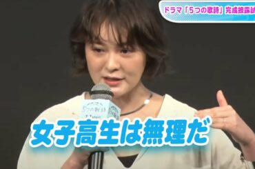 貫地谷しほり「制服はNGと決めた」と明かす 13年前の回想シーンも「大変でした」 高梨臨&新川優愛らとドラマ「5つの歌詩」完成披露試写会に登場