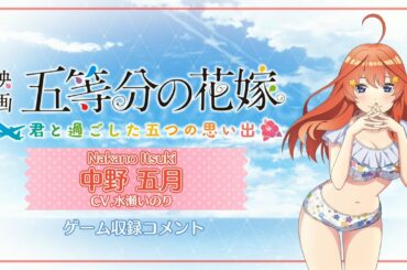 ゲーム『ごときす』水瀬いのり(中野五月役)コメント:映画「五等分の花嫁」 ~君と過ごした五つの思い出~(Switch/PS4)