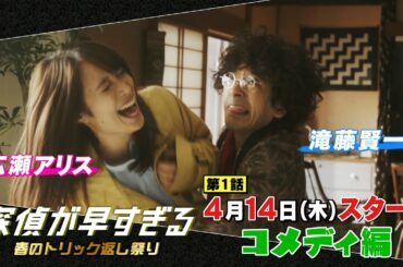 コメディ編PR動画解禁!【滝藤賢一×広瀬アリスW主演】『探偵が早すぎる』【4月14日(木)よる11時59分放送スタート!】