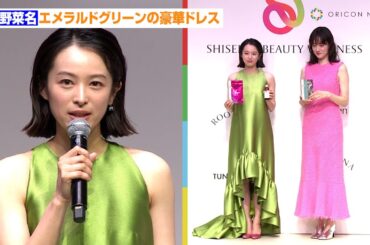 In #Girls 清野菜名、エメラルドグリーンの豪華ドレスで美肩&美脚チラリ 今年の抱負も発表「魚さばきたい」 『SHISEIDO BEAUTY WELLNESS 新ブランド・商品発表会』 2024.01.19 …