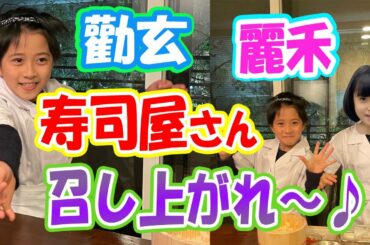 【海老蔵】麗禾ちゃん勸玄君が板前さんに変身!「なんて可愛いお寿司屋さん」