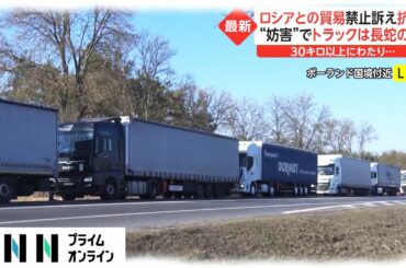 ロシアとの貿易禁止訴え抗議 “妨害”でトラックは長蛇の列[ウクライナ侵攻]