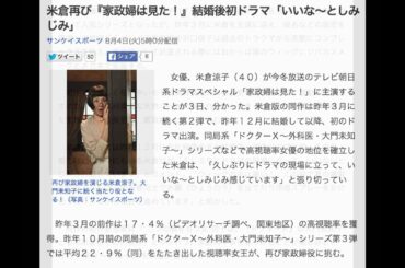 米倉涼子再び『家政婦は見た!』結婚後初ドラマ「いいな~としみじみ」