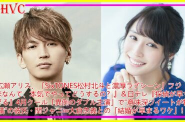 In CELEBRITY 広瀬アリス、「SixTONES松村北斗と濃厚ラブシーン」フジ『恋なんて、本気でやってどうするの?』&日テレ『探偵が早すぎる』「異例のダブル主演」で“意味深ツイートが物議”の彼氏・関ジャニ∞大倉忠義 2022.03.08 …