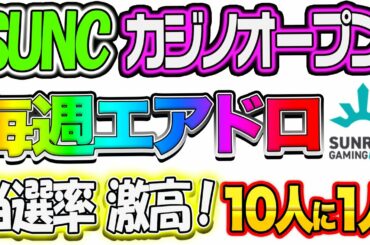 SUNCカジノオープン記念で10人に1人以上当たるぞ!毎週エアドロ