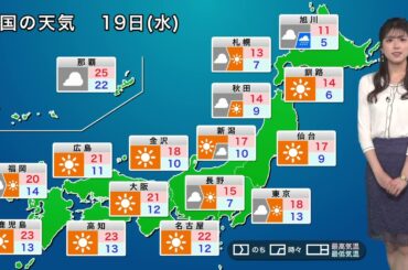 あす10月19日(水)の天気予報 Weather forecast for tomorrow, October 19 (Wed)