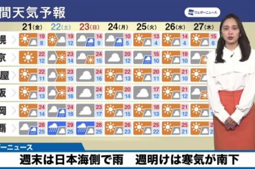 10/21(金)~10/27(木)【週間天気予報】週末は日本海側で雨 週明けは寒気が南下