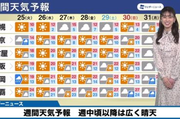 10/25(火)~10/31(月)【週間天気予報】週中頃以降は広く晴天
