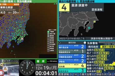 【地震】千葉県東方沖 震度4 M4.2 (2022/12/19 0:02ごろ 切り抜きアーカイブ)
