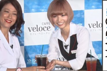 最上もが、カフェ・ベローチェ制服姿でドリンクをサーブ 「カフェ・ベローチェ『冷感研究室』」発表会2