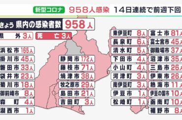 【新型コロナ詳報】14日連続で前週下回る958人感染、基礎疾患ある高齢者3人死亡部活動クラスター発生を確認(静岡県)