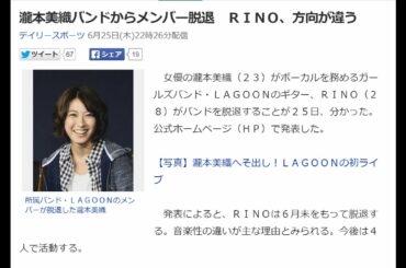 【速報!】瀧本美織 lagoon 動画 LAGOONのギタリスト、RINOが6月30日をもってバンドを脱退することが発表された。