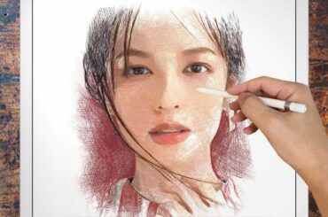 #Girls 2020.02.23 小芝風花/Crosshatching drawing process of Fuka Koshiba using Procreate of iPad Pro/プロクリエイトでイラストデッサン描いてみた…