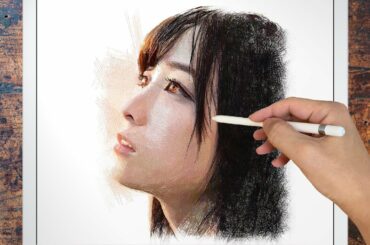 #Girls 2020.01.31 Procreate drawing “Aya Ueto” illustration on iPad Pro/上戸彩/プロクリエイトでイラストメイキング/デッサン/ArtyCoaty…